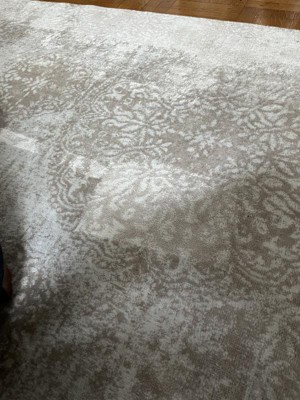 Love the carpet, easy delivery BUT...unfortunately the areas of the carpet where stickers were and wrapping ware were are kind of damaged and no matter what I do there's a square and strip that shows, maybe there's advice the company can give be but I do still love the rug!