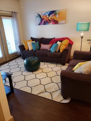 I like this 7x10 Lattice Frieze rug so much that I purchased a second one for a different room. The pattern is simple and crisp. I have the Ivory rug with gray pattern paired with Navy Blue curtains and Aqua accessories and it looks great.