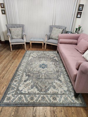 This is the fourth rug I've purchased in this Viola line of rugs. The colors in this line are earthy grays and taupes with just a hint of beige. The subtle blue accents are perfect for my blue accent chairs and pillows. The carpets are durable, easy to vacuum, and hide any accidental spills or stains. The pile is what I would consider medium-low providing you with a soft texture to walk on while still being easy to vacuum. The pile does flatten with time, as most rugs do with wear. I would recommend this rug for busy high traffic areas of your home.