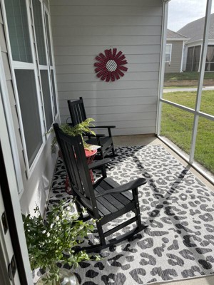 • EASY CARE: For an outdoor rug, remove debris frequently with the use of a broom or blower. To wash, spray the surface with a soap and water mixture, then rinse thoroughly with a garden hose and hang over a railing to dry thoroughly. Rotate for even wear.