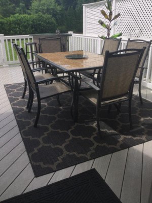 • EASY CARE: For an outdoor rug, remove debris frequently with the use of a broom or blower. To wash, spray the surface with a soap and water mixture, then rinse thoroughly with a garden hose and hang over a railing to dry thoroughly. Rotate for even wear.