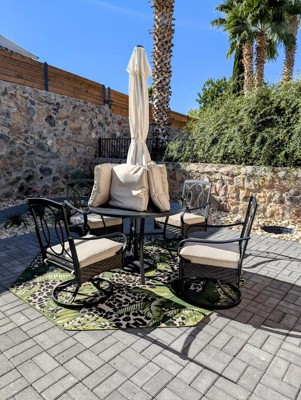 Beautiful rug! It blended perfectly with my back yard. It rained hard last night, so the cushions are drying, but can you see that gorgeous rug!