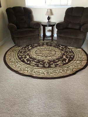 I bought this for under my round dining table. It is perfect. The colors were true to those shown on the site. The rug itself is thick and comfy under the feet.