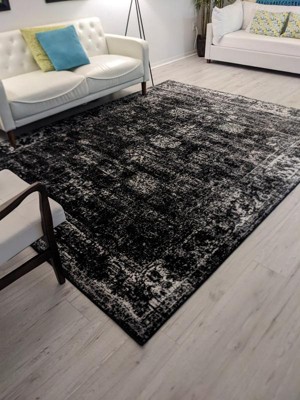 Love the textured look of black and white! The white freshens the heaviness of the black and because it doesn't have a pattern the rug goes with many things. I loved it so much I bought 4 others to coordinate my rooms!