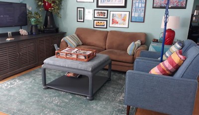 I purchased this to put in my living room. It flattened out as promised and it just looks great! I have been told I have a beach bohemian look. Lots of this blue/turquoise and orange. It is really perfect. Quality is great. It surprised me to see it was shipped from my hometown of Fort Mill, SC!