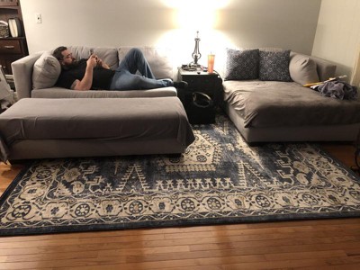 This rug is just the right combination of blues (to match our decor) and yellows/tans (to hide dirty puppy paw prints and baby spit-up lol). It’s thick enough to be comfortable for our baby to crawl on, but not too thick where The vacuum can’t handle it. Highly recommend!