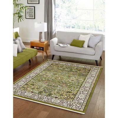 Love the shade of green. I have purchased 4 of these rugs and they have lasted for years and still look great!