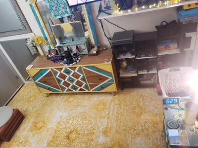 Looks good in our space and arrived quickly. Can look more gold than yellow in certain lights. For the price I'm happy with the quality and thickness of rug. Just what we needed for that pop of color!