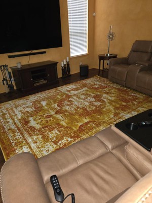 Beautiful gorgeous rug. It looks rich and really brightens up the room. I highly recommend this rug. You will love it too! It is a bit thin, so we are going to get a rug pad to go under. It's fine how it is for now.