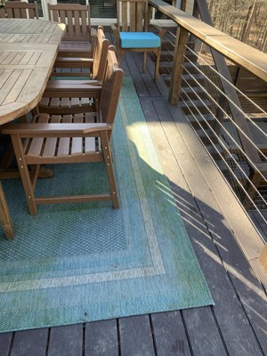 I bought two of these for my deck and very disappointed as they are now covered with algae from never drying out. I know it's all dependent on humidity and the amount of rain, but some outdoor rugs dry faster or hold up better in weather. These are not very old and will likely be torn away once the winter is over. They can be powerwashed, but it is too much trouble to move the heavy furniture off of them and hang them over the railing every 6 months or so. Loved the look, but impractical for outdoor use.