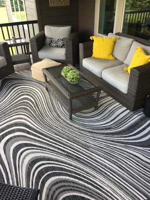 Shopped around quite a bit for the perfect carpet and found it in this one! Love the modern design, price was very reasonable and quick delivery! I was looking for a neutral color because I want to be able to redecorate the patio furniture each year with different color pillows and not be locked in to one color. Rug is just as described! Waiting on patio furniture next!