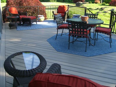 I bought this to fill a screened patio space. It lies under another outdoor rug with more fluffiness. This is the perfect base layer. Love how the multiple blues paired will with the other decor in the room.
