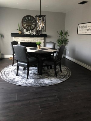 Bought this rug after looking at it for quite a while. It is great on the hardwood floor and is super plush so someone can trip over edges... I really feel like I need one a little bit bigger because I love the way it looks under my table