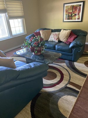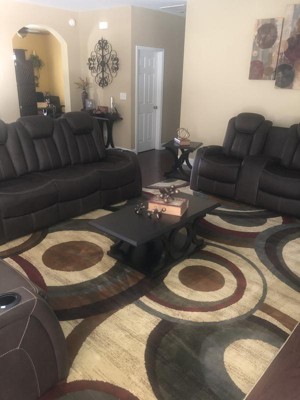 Initially I was concerned it would be too much because of my non traditional color scheme in my living room. To my surprise it is perfect! I measured perfectly around the seating area to make sure all the furniture is on the rug. The only thing the Vendor should consider, related to shipping, is another way to prevent that huge fold/crease in the middle. It’s taking weeks for it to relax, still not totally complete, as well as some other wrinkles. I don’t know what the answer would be for that, but thought it was worth mentioning. I do love my rug!!