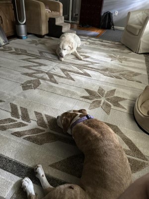 We put this rug in our living room and like the idea that it is rated for outdoor use for cleaning purposes. The mixed textures of the rug are awesome. With two dogs, holding hair is always a concern, but this rug traps 0 fur, a quick vacuum and we are set.