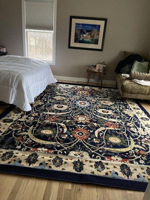 I bought this rug for my huge living room with off-white tile flooring. It arrived within three days of my purchase. The size and the colors turn out to be just perfect. It looks stunning with bold colors, better than pictured. I am very pleased, and would recommend shopping here to anyone.