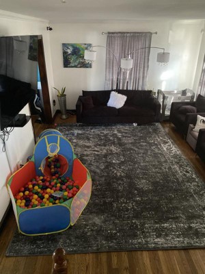 I was amazed to see a rug this size, for this price. I was even more amazed when I received it and put it down! The color is beautiful with variations of gray. With rug padding underneath, it is also as comfy under foot as it is attractive.