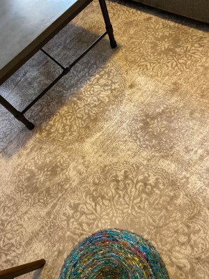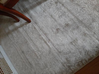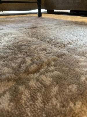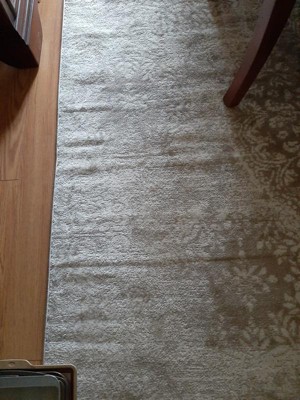 I bought this about a month ago. My first impression is that it was soooo light. After vacuuming it darkens up. I steamed it to Try to release some of the wrinkles and had it in my garage for about a week and it still hasn’t fully relaxed. I Added two coats of Scotchgard and so far so good all in all I really enjoyed the rug and the size.