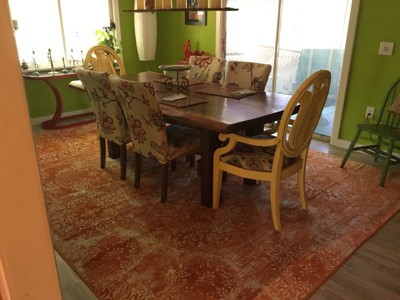 Love this rug under my dining room table. Large but perfect size along with a smaller version at the entry way. Very pleased.