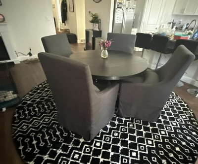 it’s a beautiful rug and it looks fabulous in the dining room. It has laid flat since the moment I put it down . My dining room chairs have casters and I’ve had no issues with them rolling over the rug I would not hesitate to buy it again.