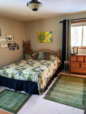 My bedroom has various colors of green. This area rug fits in perfectly because it has many green colors woven in. Love it.