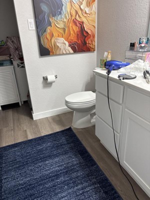 I purchased this rug to bring some style into my master bath. All white walls and vanity needed some Style and this did the trick.