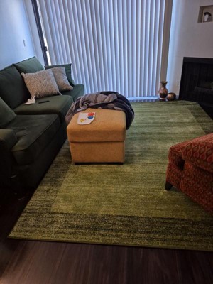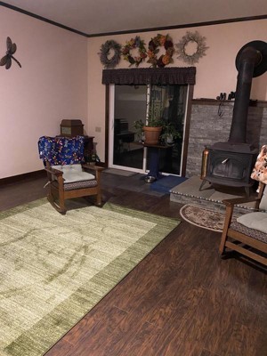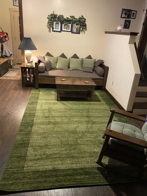 The rug does not look much like the photo in the listing. In stead of green with a dark green line around it, it’s green with a white line around it. Also, it is thin, but I was expecting that from the price and was going to put it over carpet anyways. Luckily I was able to return it very easily.