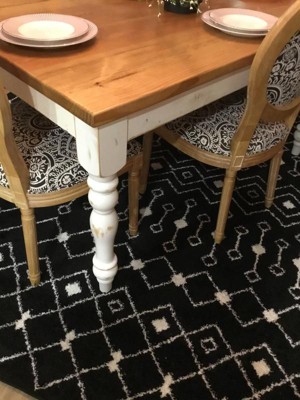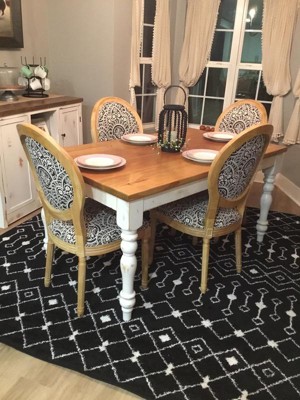 Great quality rug. I love the thickness and the pattern. The black & white version are holding up well to my toddler & baby.