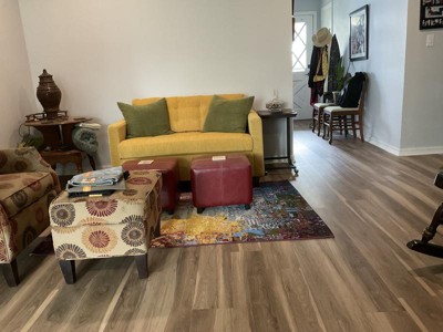 My old outside rug from rugs.com finally needed to be replaced after over 7 hard winters in the PNW rain and dogs. These rugs are soft to the touch (until they wear way, way down) easy to roll up, but what's great is they stay unrolled, flat and in place. This rug makes me smile.
