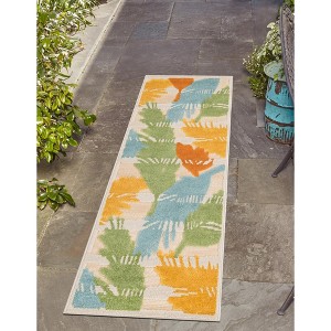 A: The rug is made from 100% polypropylene, ensuring durability and resistance to outdoor elements.