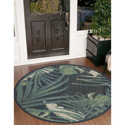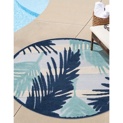 Relax by the pool or refresh with a cool drink on the deck or patio with the lush and refreshingly vibrant coloration and patterns of the Aruba Outdoor Collection. With an abundant choice of styles, from stripes and geometric patterns of dots, diamonds or ovals, there's sure to be a design to create a picture-perfect outdoor living space. Choose from several botanical styles including sweeping graphic palms or elegant large-format silhouette style floral patterns for a more refined look. There's even Aztec-style patterns for a bolder look. Vibrant pastels of pink, peach and purple are complemented by natural earth tones of navy, gray and rust. Available in a variety of sizes from runners to circles, squares and rectangles, each rug is made of machine woven, power loomed space dyed polyester. This medium pile construction offers a unique high/low pile with a combination of cut pile and flat weave technique, giving it extra dimension and visual interest. Enjoy it for both indoor and outdoor placement.