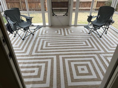 Made my outdoor patio brighten up . Looks great and feels good . No scratchy jute . Love it and great design .