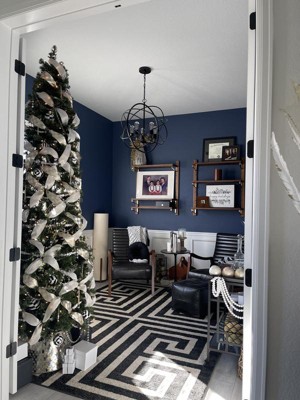 The rug is more beautiful than the picture and compliments my design and accessories very well. It gives me just the right amount of black and is not too busy or over powering. It makes my foyer and dining room look rich. You really need a rug pad because the crug is not thick.
