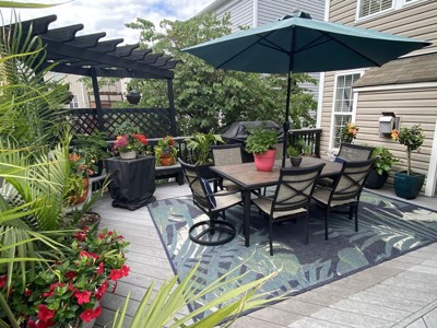 A: Yes, its flat-weave pile allows for seamless placement underneath furniture both indoors and outdoors.
