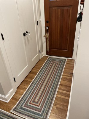 • CARE: For an outdoor rug, remove debris frequently with the use of a broom or blower. To wash, spray the surface with a soap and water mixture, then rinse thoroughly with a garden hose and hang over a railing to dry thoroughly. Rotate for even wear.