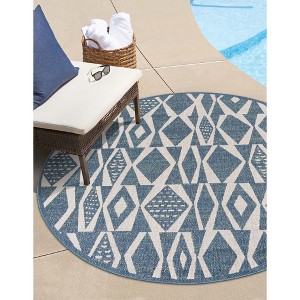 A: The rug's pile material is 100% polypropylene, making it durable and suitable for outdoor use.