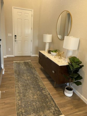 This makes a beautiful runner in front of the double vanity. The pattern is very subtle. The primary color is dark grey followed by a light griege. Happy with the his purchase!