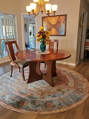 I purchased this rug a month ago and it is absolutely beautiful! It has added warmth to our dining area. The only thing, it made me order another rug for the living area in a complimentary color and design! Great value for such a welcoming addition!
