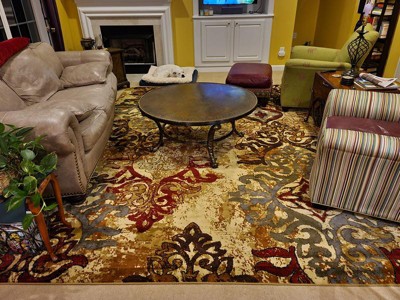 I bought this rug for my living room. It brings the room together with all the colors which match the oil painting and metal art pieces. I love that the colors are vibrant. There is no shedding with this rug which is awesome!