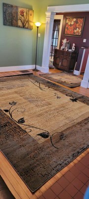 It is a gorgeous rug that goes beautifully in my dinning room. Perfect design not too much has many colors in it and very soft.