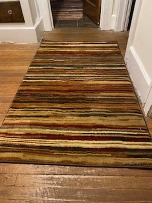 I purchased this small runner for a space leading from the stairs to the bathroom. I was concerned that the colors would be too bright. However, coloring consisted of earth tones and blended in well with my honey colored hardwood floor. This rug is thin and needs to be taped down so it doesn't slide. It was cut evenly and edges are finished making it look trimmed and neat. It is perfect for this high traffic area and I am pleased with the personality it offers the space.