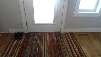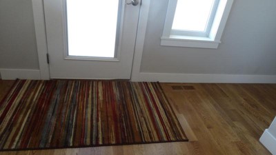 love the new rug! bought it for the kitchen area to save the hardwood floors and hoping to hid stains and messes from the kids and dogs going in and out the back door, and it is doing the job.