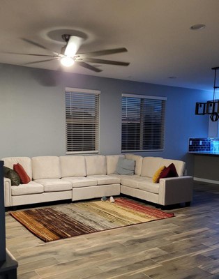 A: The rug's pile material is 100% polypropylene, providing durability and resistance to stains.