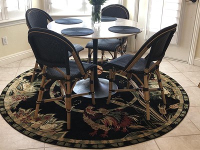 Chose this rug to fit the decor of the kitchen. Delivery was prompt and rug is perfect, + 7 foot diameter to fit under the table is what was needed, am not disappointed.