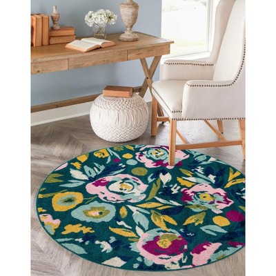 • Size in FT: 5' 3" Round - Size in CM: 160 x 160 - Pile Height & Thickness: 1/2" - Colors: Teal, Ivory, Green, Light Blue, Purple, Yellow, Pink, Navy Blue