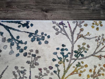 A: The rug features bright colors and bold, botanical prints, perfect for plant lovers.