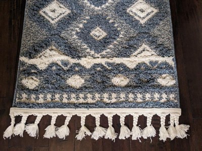 [This review was collected as part of a promotion.] This rug is so pretty & it was longer than what I thought it was. I love the tassel at the end, you can tell they are made out of really good material, I should say the whole rug looks that way. It's really soft to walk on & the blue/ ivory are just a great combine of colors