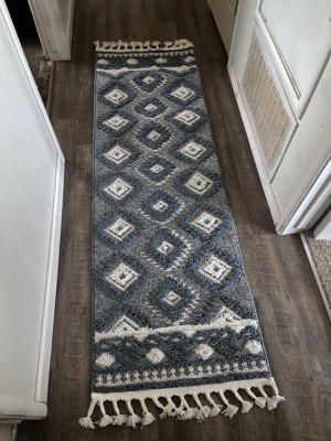 [This review was collected as part of a promotion.] This rug is so pretty & it was longer than what I thought it was. I love the tassel at the end, you can tell they are made out of really good material, I should say the whole rug looks that way. It's really soft to walk on & the blue/ ivory are just a great combine of colors