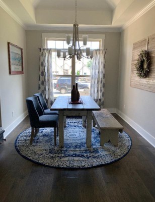 Love the rug! it’s perfect in the dining room... the different shades of blue blend in perfectly w/the rest of the color scheme of the room!