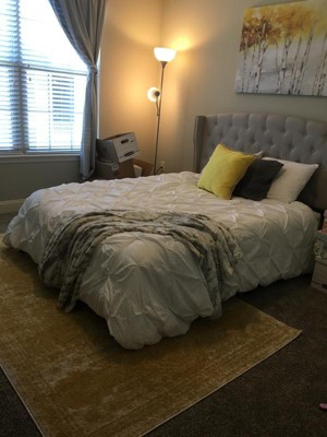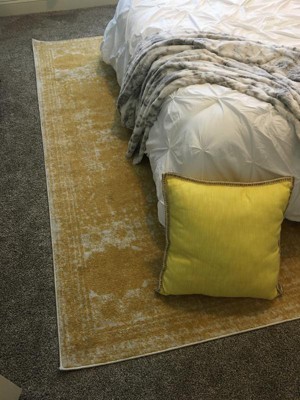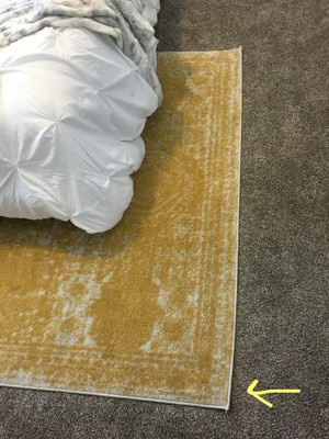I'm so happy with the yellow rug. It's a warm pop of color added to our bedroom. It contrasts our dark laminate floors beautifully. I have a minimalist design style and this rug added the needed focal point to the room.